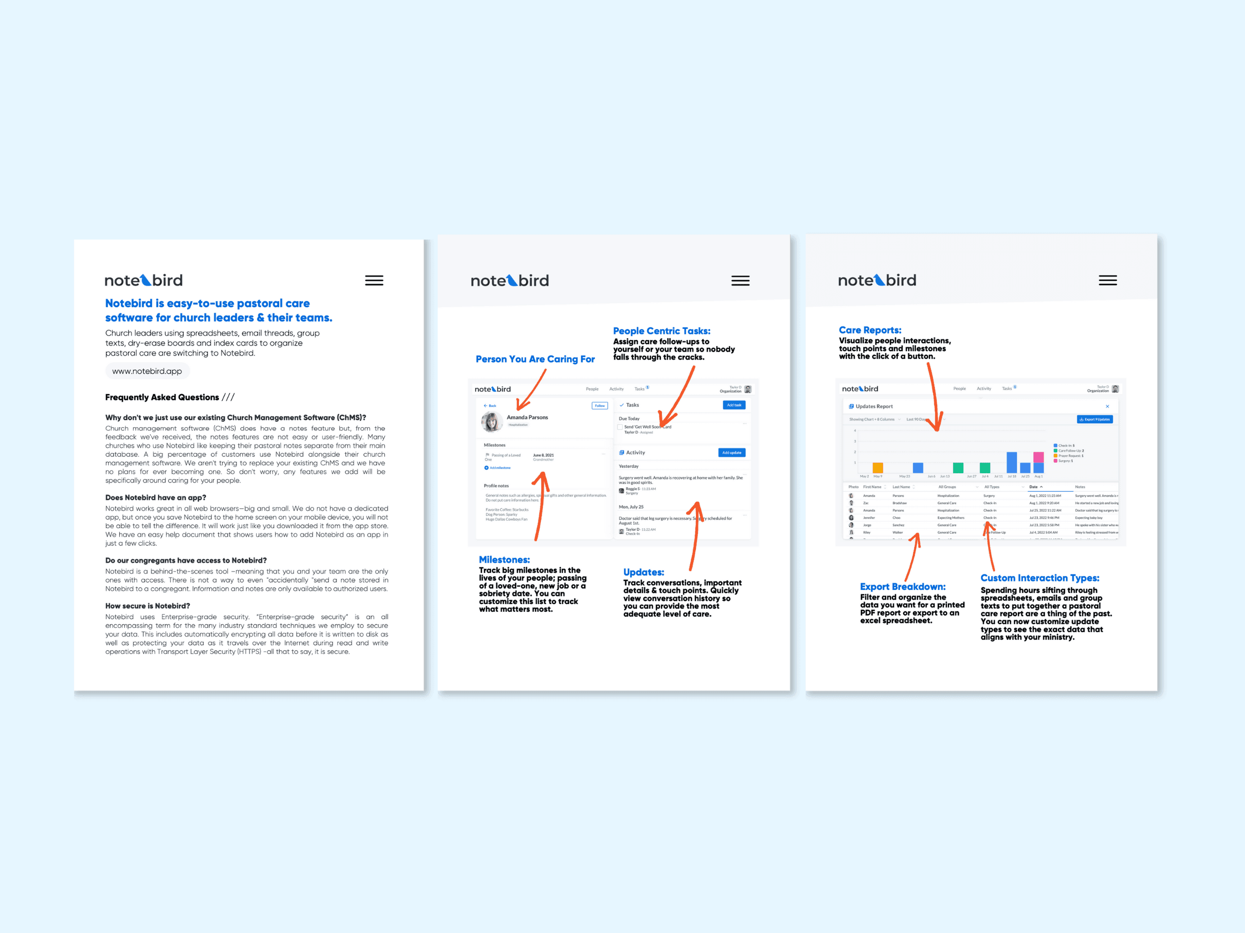 I found a tool called Notebird which is software helping churches manage and organize pastoral care. I will show you a demo video at our meeting and we can decide if it is something we want to test out as a team.
